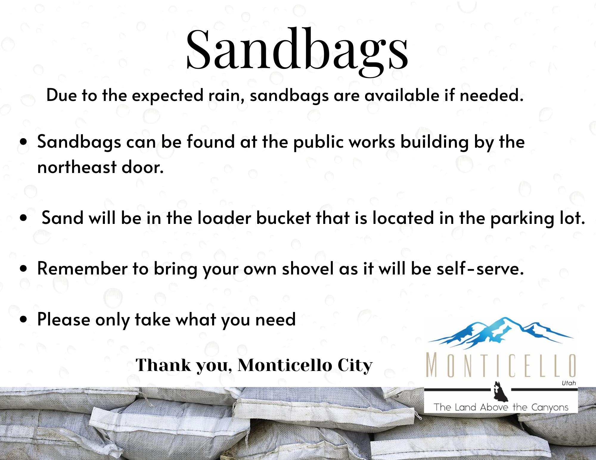 Sandbags will be available if needed