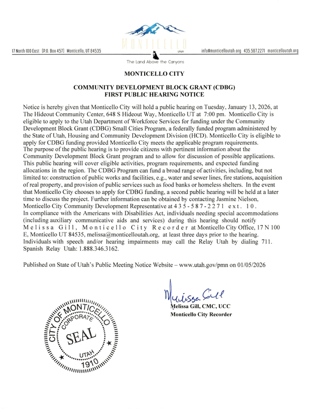 COMMUNITY DEVELOPMENT BLOCK GRANT PUBLIC HEARING