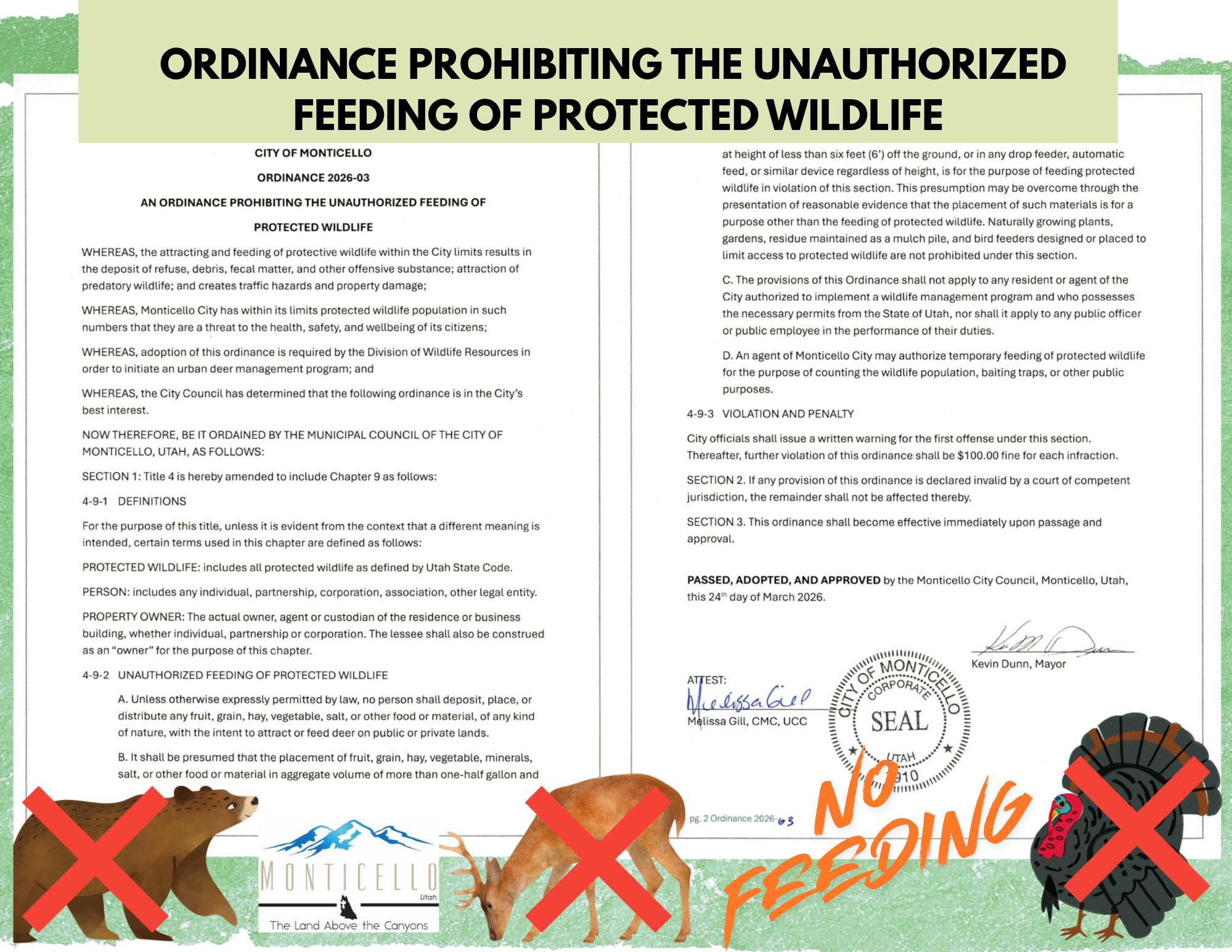 Ordinance Prohibiting the Feeding of Protected Wildlife